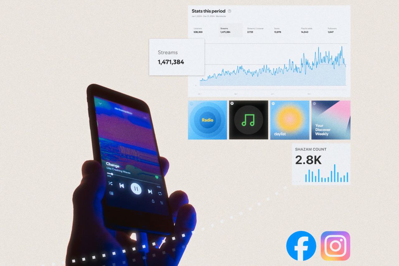 We track the numbers musicians actually care about: streams, followers, saves, playlist adds; not just impressions. You’ll see the impact clearly.
